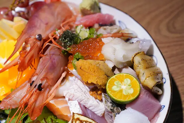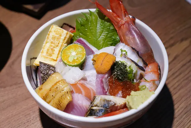 從海膽、鮭魚卵、現流蝦、日本黑鮪大腹、干貝、鱈魚白子、比目魚,這裡頭可以說是海味十足再加上當季水果整體更是繽紛,從海膽軟綿的質地,鮪魚大腹,一路走到鹹香的鮭魚卵,在嚐一口奢侈的鱈魚白子每一個都奇特無比!