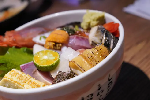 每一口、每一次觸覺,都有如悠遊在海洋裡面的快活,承接過來的重量,是無法招架的扎實,豐腴的各種魚料,從近海到遠洋,無處不再,繽紛的色彩,豪邁的生魚片,是美味、是罪惡、是滿足。