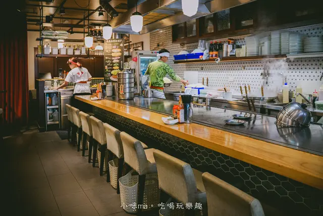 一進門就可以看到一長排鐵板區座位,每個座位底下都有放置置物籃,這裡可以直接看到師傅製作廣島燒的精湛手藝,我當然大推鐵板區座位啦