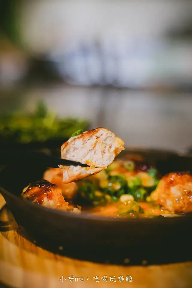 再來就是必推他們家的雞肉丸子,整顆不單單只有雞肉餡,還加了雞軟骨下去剁碎,每一口都可以吃到一點脆脆的口感,沾上黃澄澄蛋液更滑嫩,絕對是會讓你印象深刻的雞肉丸子