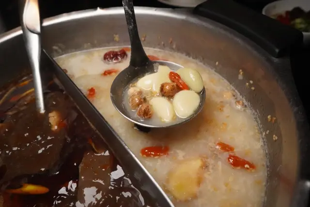 而另一個與紅鍋比鄰的白鍋湯頭看來就白滑醇實許多,採用蔬果跟豬骨熬製的湯底,呈現的濃郁跟口感滋味相當溫醇裡頭同樣有自家搭配湯頭基底呈現好喝的風味,兩種來搭配食材下鍋來涮煮一番吃起來更是別有一番滋味在心頭