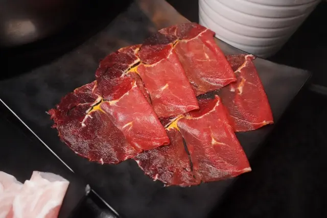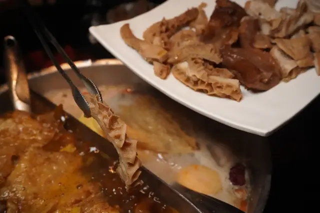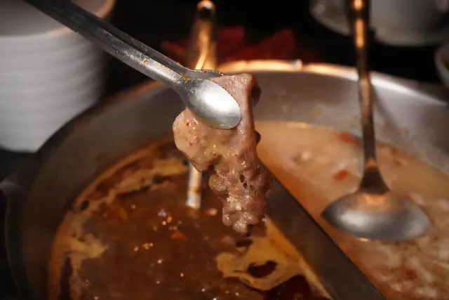 來這裡用麻辣鍋涮煮的滋味跟燒肉店烤出來的完全不同,帶上點水份的濕潤牛舌的嚼勁跟風味多了些層次感。