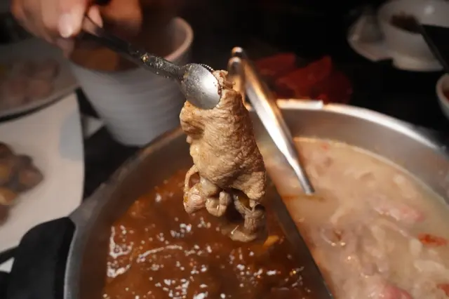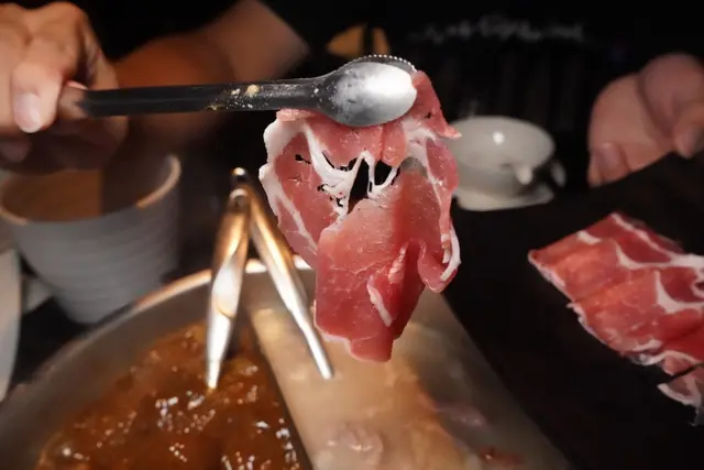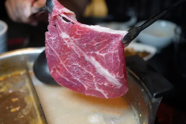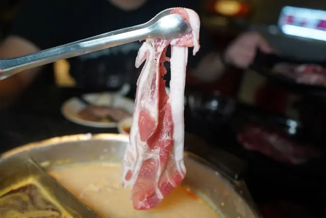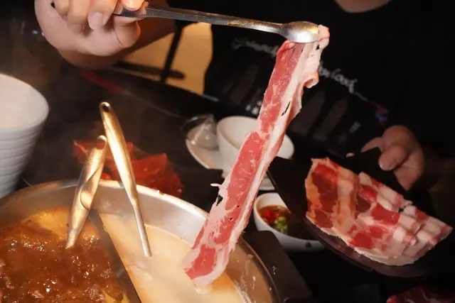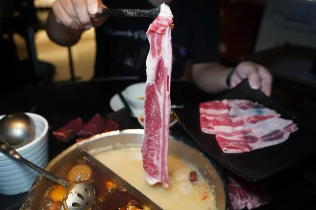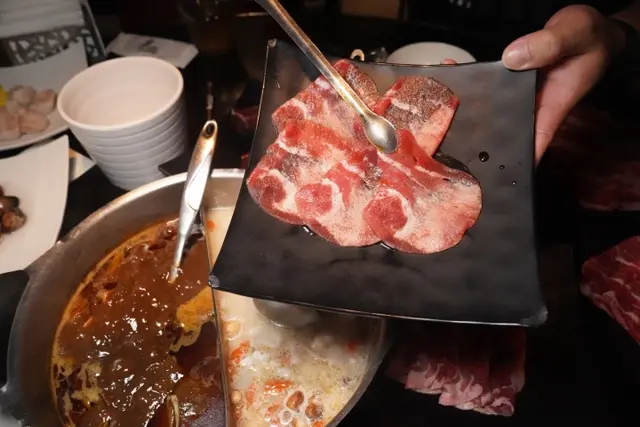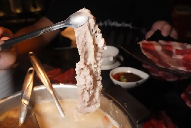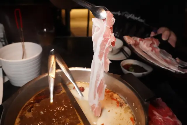 這個很受歡迎的台灣黑毛豬到那裡都是人氣豬肉品項,馬上來給他涮上全熟一嚐被紅白湯頭包覆的風味與肉品口感