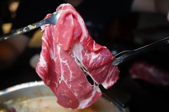 這個這個雪花油脂同樣分佈的很過分的是CAB安格斯雪花牛,看著滿滿紅白相間的牛肉放在鍋裡看著他逐漸熟成,再撈起來放在嘴裡真的是很享受的過程。