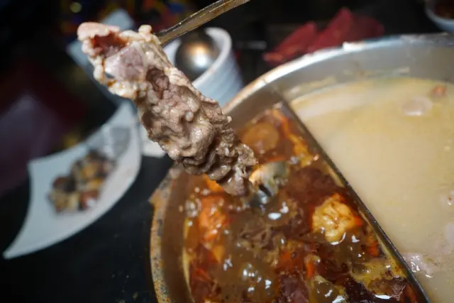 吃辛殿當然就是要嚐看看鴛鴦鍋的滋味,紅鍋與白鍋兩種不同的湯頭來給肉品海鮮鍋物等不同風味加成。