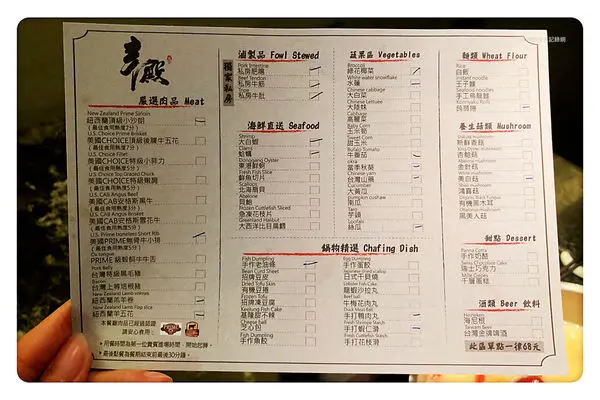 鍋底有豆腐及鴨血,吃完可以請服務人員續加