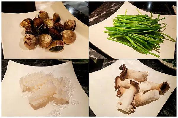 蛤蠣、急凍花枝片、水蓮、黑美人菇