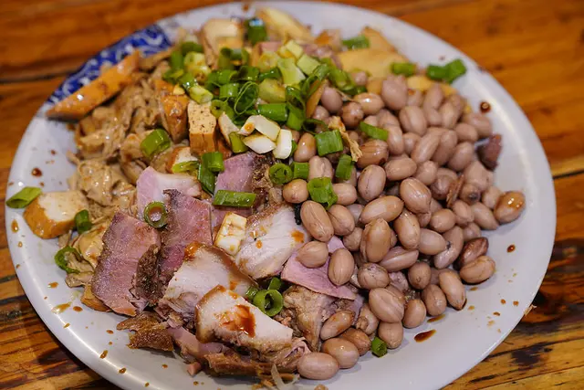 三兩下就將咱說好的滷菜切好,瀟灑地灑上蔥、醬油、香油,如此鏗鏘有力的姿態,實在太霸氣