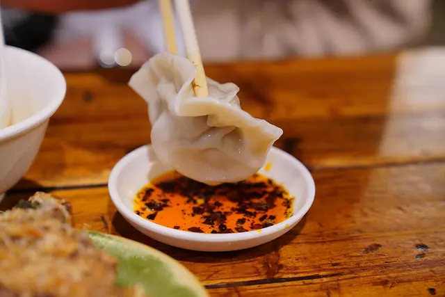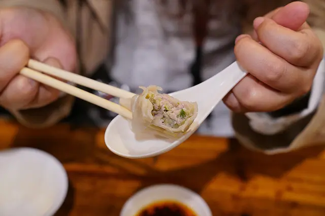不過小心嘴唇,那高溫的湯汁可是會親熱你的嘴,水餃鮮甜宜人,切記!要沾點辣醬,可是另一種風味。