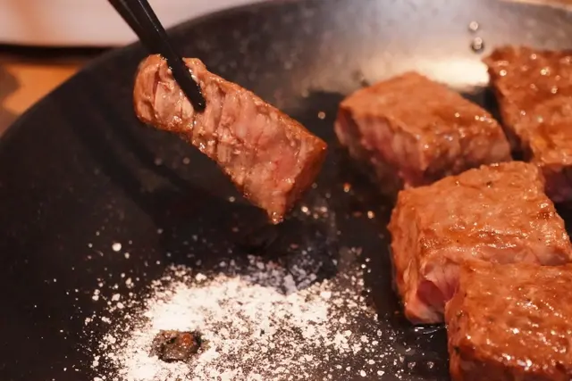 讓裁切成一小塊適合入口大小的和牛牛排,在吃下去時肉汁香味四溢