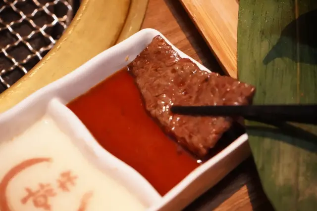 除了吃肉品的原味外,也可以倒一點烤肉醬
