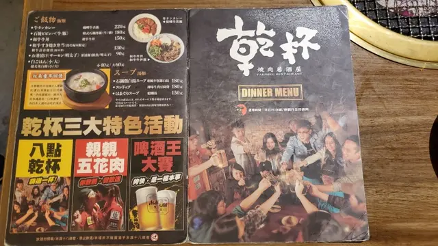有著多樣美味燒肉菜單以及商業午餐、套餐和壽星優惠在乾杯燒肉價位上