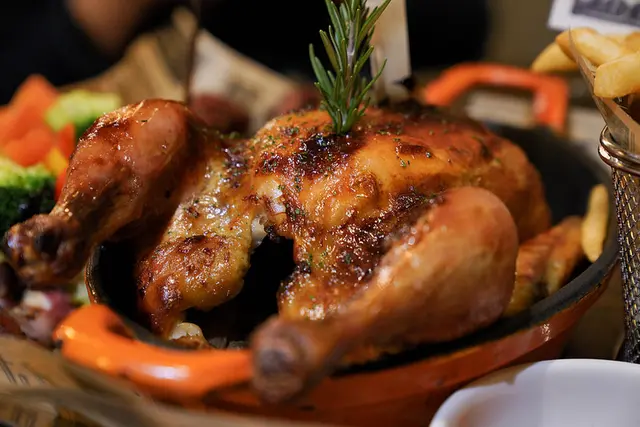 烤全雞請勿請一食之快!會被熱情的雞汁給熱情的燙手!