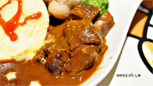 因為咖哩醬裡面有添加了少許的紅酒,所以會有點酸酸的味道