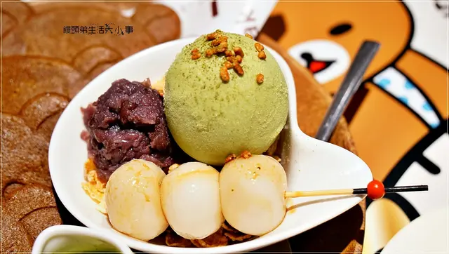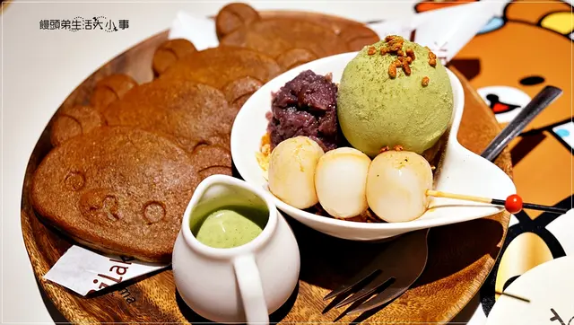 甜點部分我點了拉拉熊抹茶紅豆鬆餅,就連鬆餅也是拉拉熊的造型,吸睛度百分百啊!!