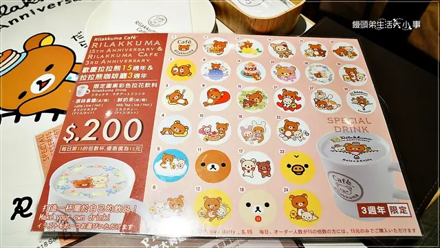 每個桌子桌面都有可愛的拉拉熊圖案,每桌圖案都不一樣