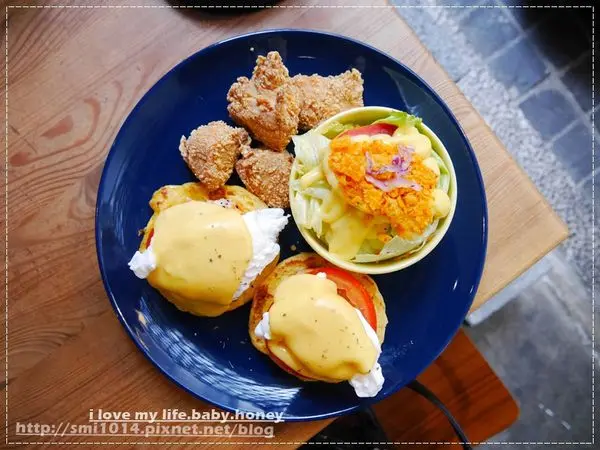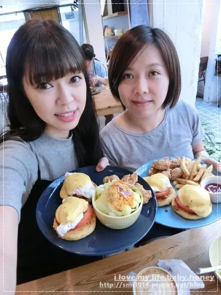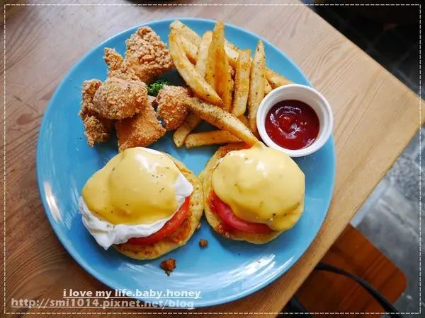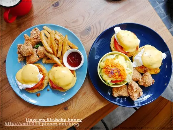 我們點的兩份水波蛋早午餐,餐盤顏色搭配起來真的好美