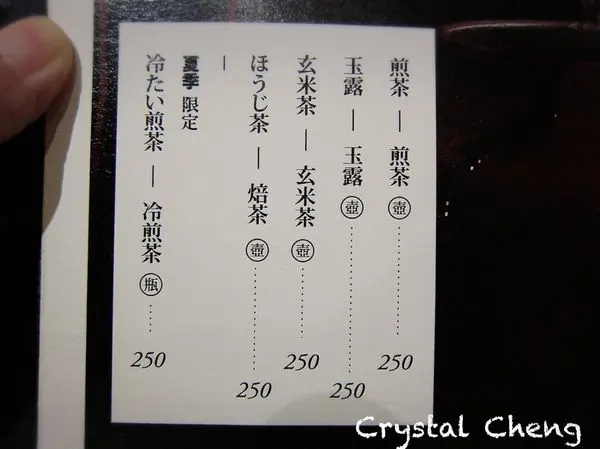 飲料可以選咖啡或是日本茶,日本茶種類有:煎茶、玉露、玄米茶、焙茶,