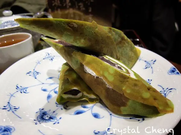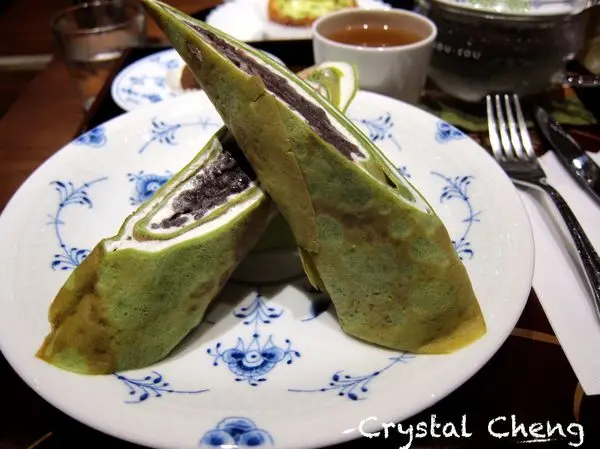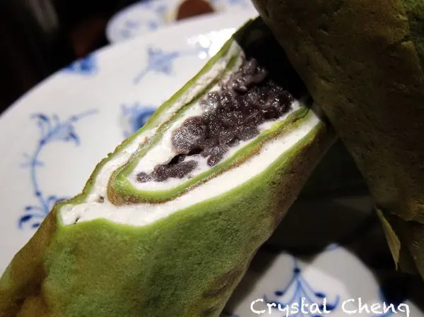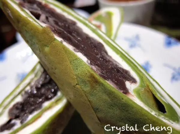 薄餅的外皮是抹茶口味的,不過吃不太出來抹茶味,