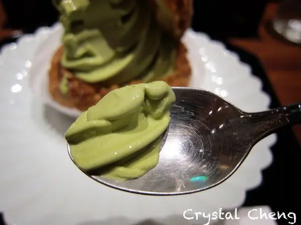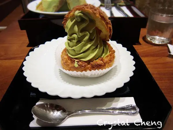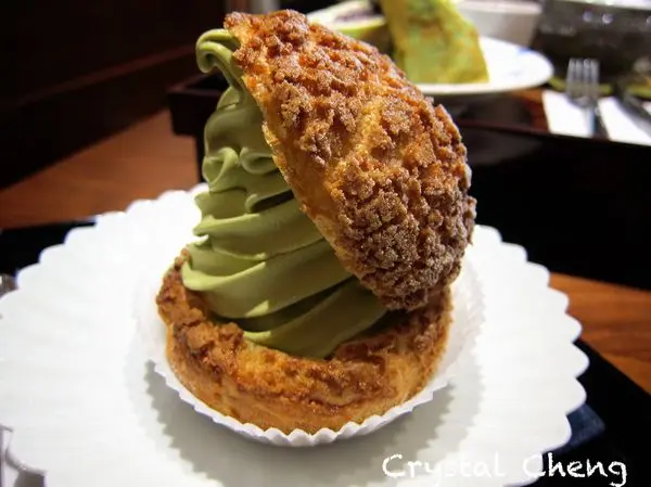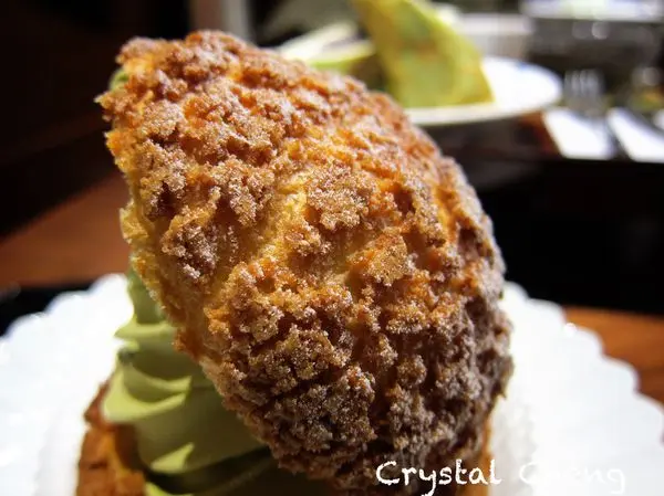 很濃的抹茶味,泡芙的外皮還帶著一點砂糖顆粒,