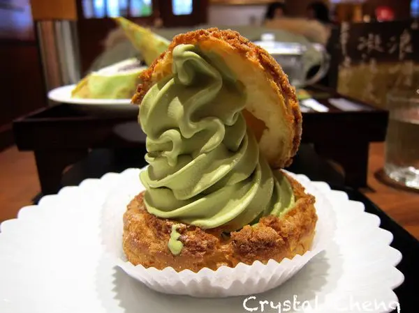 所以也是泡芙皮跟抹茶霜淇淋分開吃,或沾著吃。