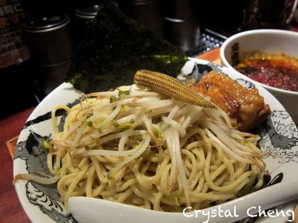 這碗屬於基本款的沾麵,有叉燒一塊,以及炒豆芽菜、玉米筍。