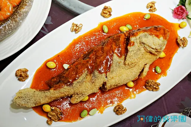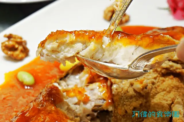肉香且細緻,糖醋醬酸甜,盤上還有核桃點綴,相當有巧思。