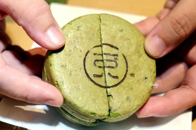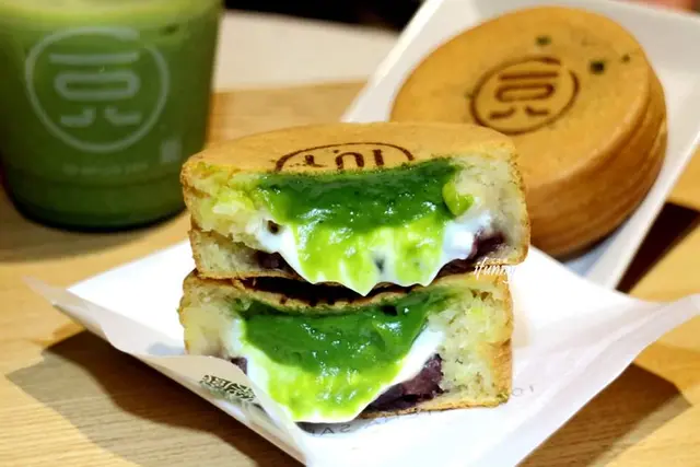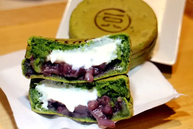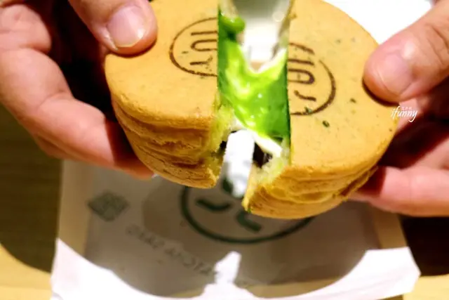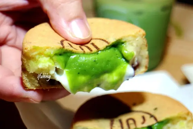 大判燒的外皮帶著酥脆,些許的厚度軟綿且奶香十足,抹茶卡士達香滑順口,而奶油乳酪卻是帶出鹹香味。