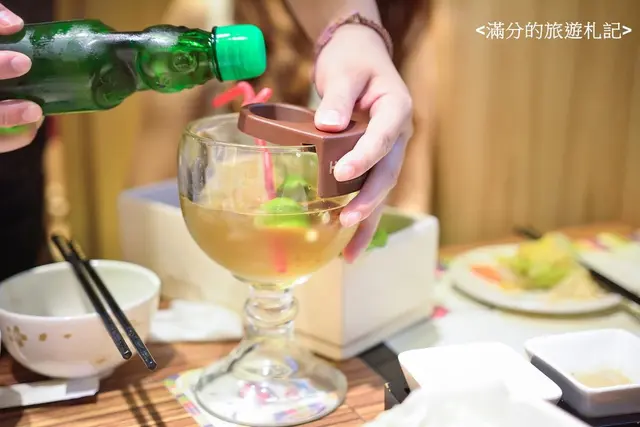 好酷唷,倒掛的彈珠汽水慢慢湧入杯裡