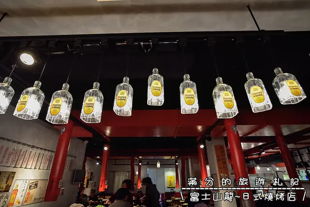 『富士山龍』門口以角瓶酒罐切割當吊燈裝飾非常有特色