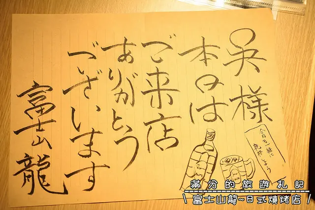 服務員熱情的將滿分們帶位上桌,哇~~上桌就收到歡迎來店的大卡片