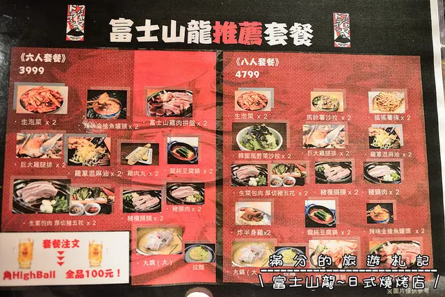 滿分今天點餐的是富士山龍推薦的兩人套餐$1299;另有其他多人套餐可以選擇唷