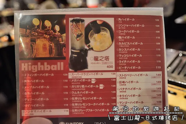 乾杯唷~~~『富士山龍』推出的特色飲品-角嗨,使用碳酸水、檸檬片、富士山龍的威士忌再加上台灣限定口味的水果混搭
