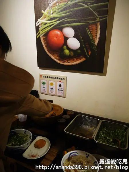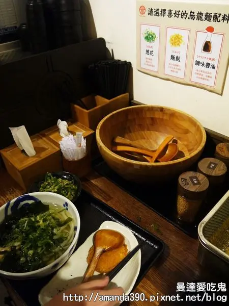 小菜拿好後,請向人員點取你想要吃的烏龍麵口味