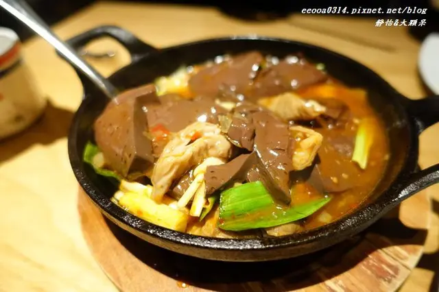肥腸+鴨血加入陳年豆瓣醬