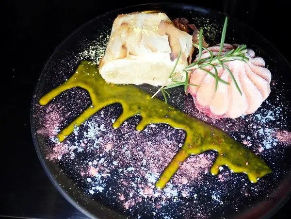 使用琴酒、紅酒、橙酒、香艾酒、松露醬、松露油,入口有微微的酒香,帶有油脂感,