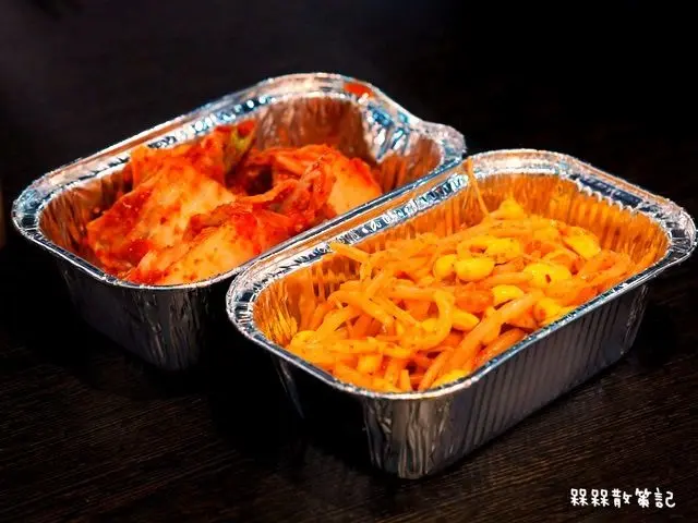 ▲小菜可以免費續點,有豆芽菜與韓式泡菜兩種可以選擇,味道都還不錯。
