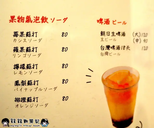 就像美麗果的柳橙汁和酒精、蘇打水調合而成,搭配燒肉可以解膩,只是口味比較偏甜。