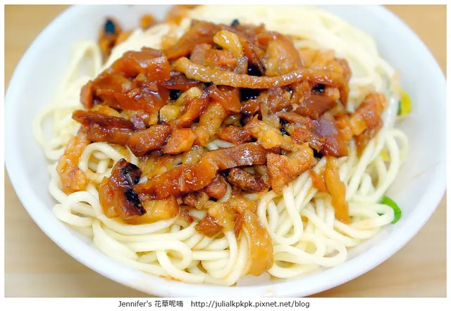油麵加上滷肉還有一些豆芽菜和韭菜