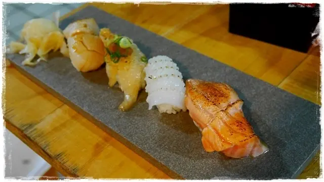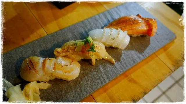老闆還叮嚀,這盤炙燒握壽司不用另外沾芥末,已經配好它的味道。