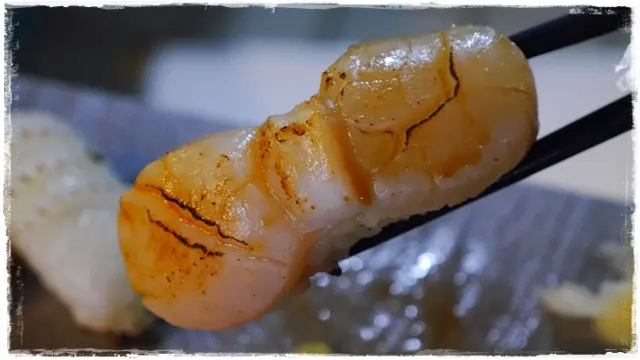 炙燒過後的日本大腹除了有大腹本身的油脂之外,有一種類似牛排肉質給人的咀嚼感。