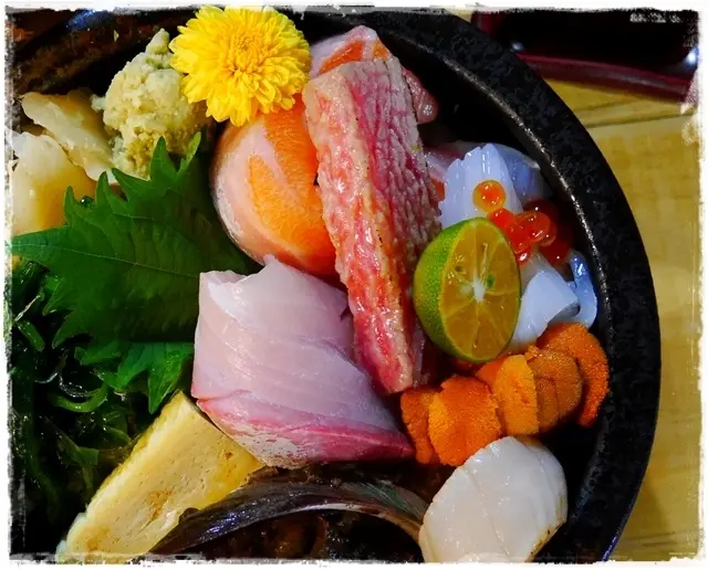槑槑喜歡:特上海鮮丼(日本大腹、鮭魚腹、海膽、鮑魚、干貝)、比目魚鰭邊肉