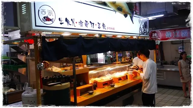 到了西湖市場,馬上就可以看到圍繞著壽司吧台的人潮。