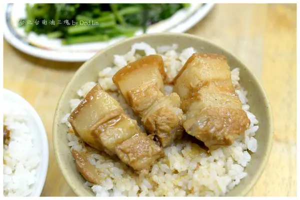 走著走著就這樣到了目的地,看到大大的四字~就是這五花肉啊~~台南滷三塊。(不知跟台南有無關係哈...)