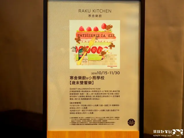 一到寒舍樂廚就可以看到這次合作的小熊學校看板。