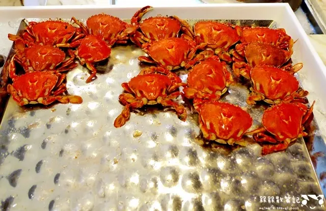 冷食區位於甜點區後方,除了生菜沙拉、水果外,還能品嘗到許多涼拌小菜,菜色隨著季節更換,因此現在也有供應螃蟹。