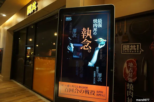 而 開丼 燒肉vs丼飯( 南港環球店) 店面,更也是霸氣十足的呈現光是招牌以及大型屏幕。