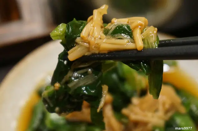 以金針菇為主體再搭配上當季的季節時蔬一同料理的小菜類。