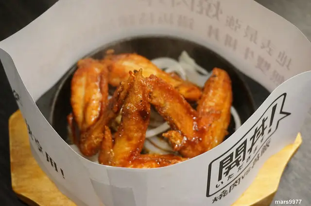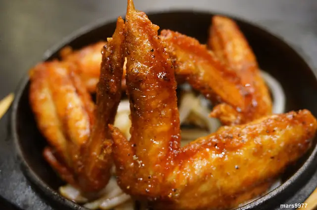 這一道服務人員一上桌就叫我們要留意的熱騰騰的鐵板燒雞翅。