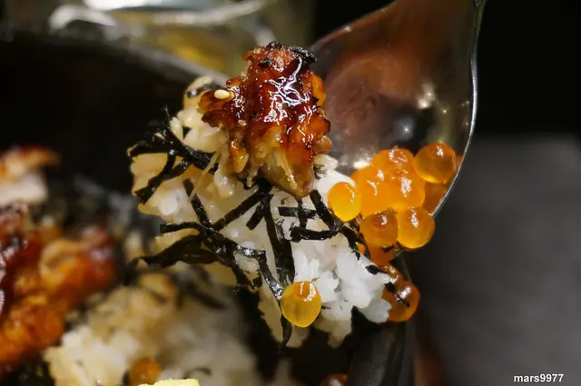 當然也要用上湯匙著來一匙一米飯、一饅魚、一魚卵的組合著。